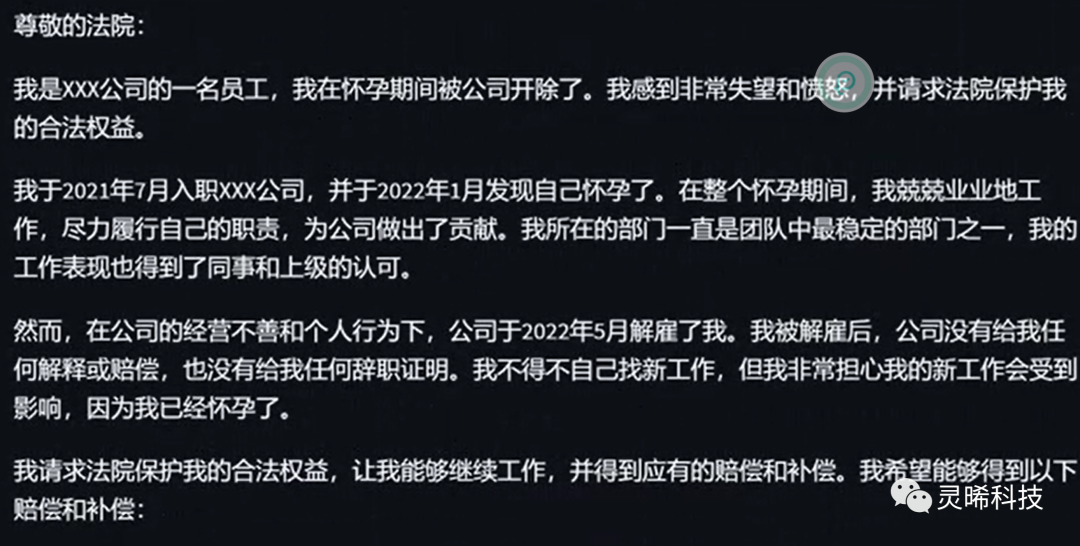 问题:我怀孕后被公司开除了,请帮我写一份诉状。